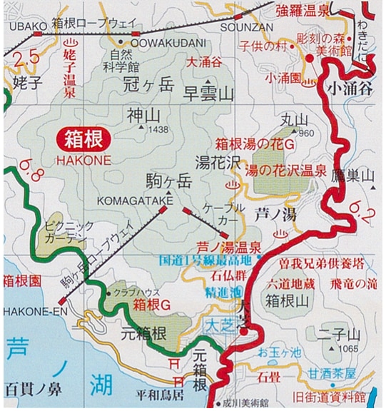 色付きの地図資料では、海・川・湖・ダム等水が関連する場所が水色、山や森などは緑色で着色されており、色自体が意味を持っている場合があります。