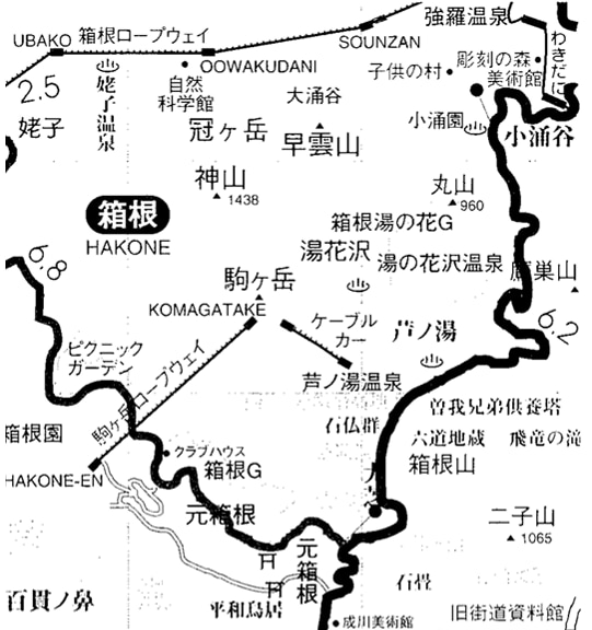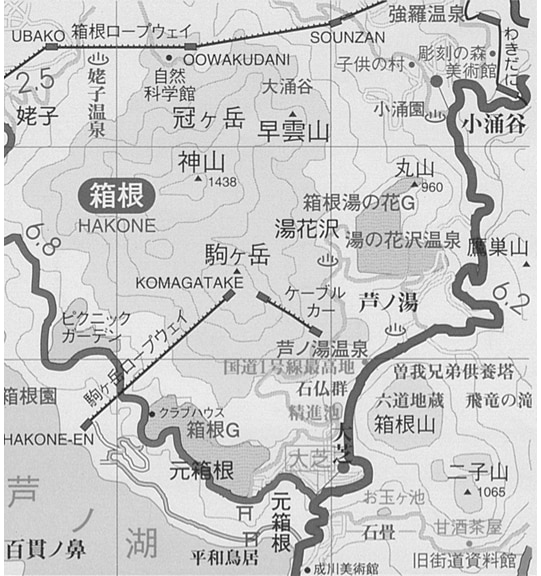 白黒2値では、細い線で表記されている等高線だけでなく、淡い色の文字で表記されている地名などは白くなってしまって再現されていません。