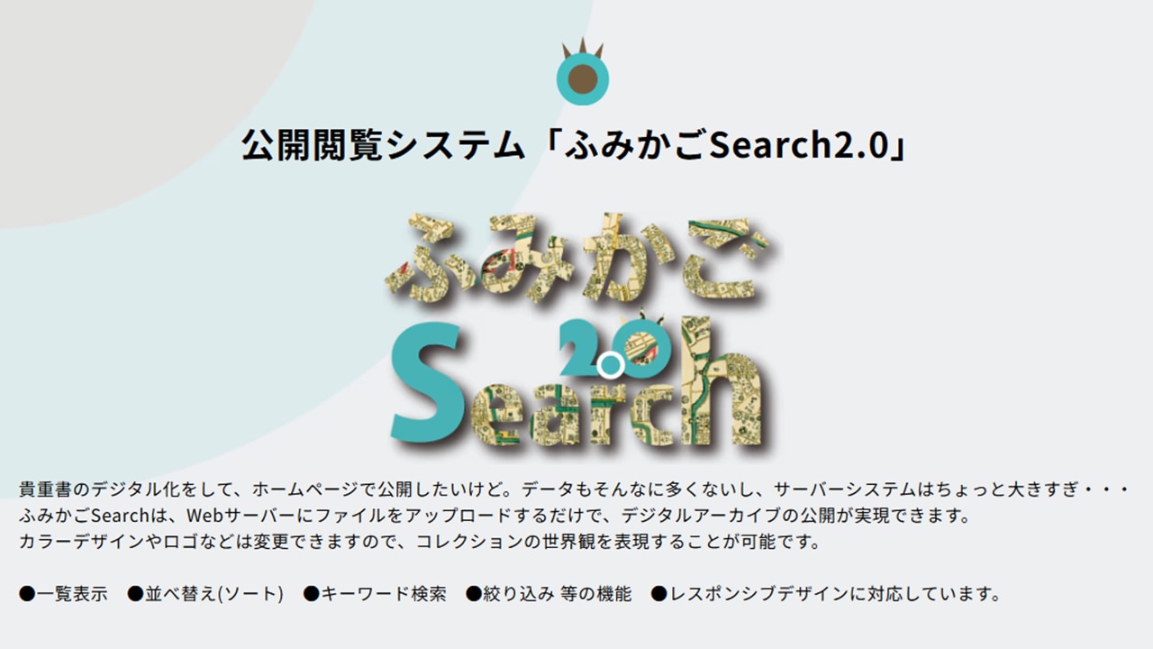 弊社の公開閲覧システム「ふみかごSearch2.0」紹介ページはこちら↓↓