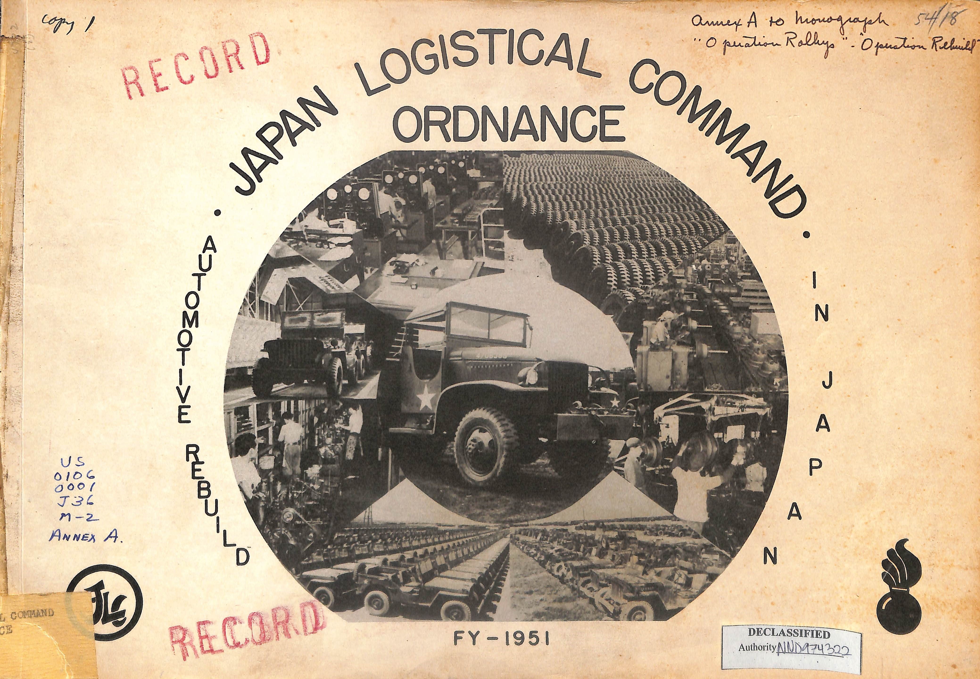 Japan Logistical Command: Ordnance: Automotive rebuild in Japan: RG 550 (Records of United States Army, Pacific 1944-72), Organizational History Files 1959-1973, Entry A1-1, Box 265. National Archives in College Park, MD.